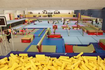 Die Kunstturnerinnen Zürich-Oerlikon trainieren im Leistungszentrum ZH-Furttal in Regensdorf. Mit Schnitzel-grube, Tumbling Trak...